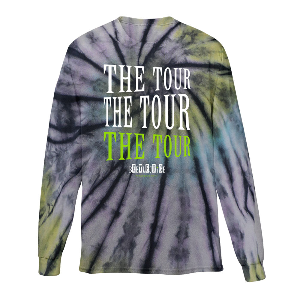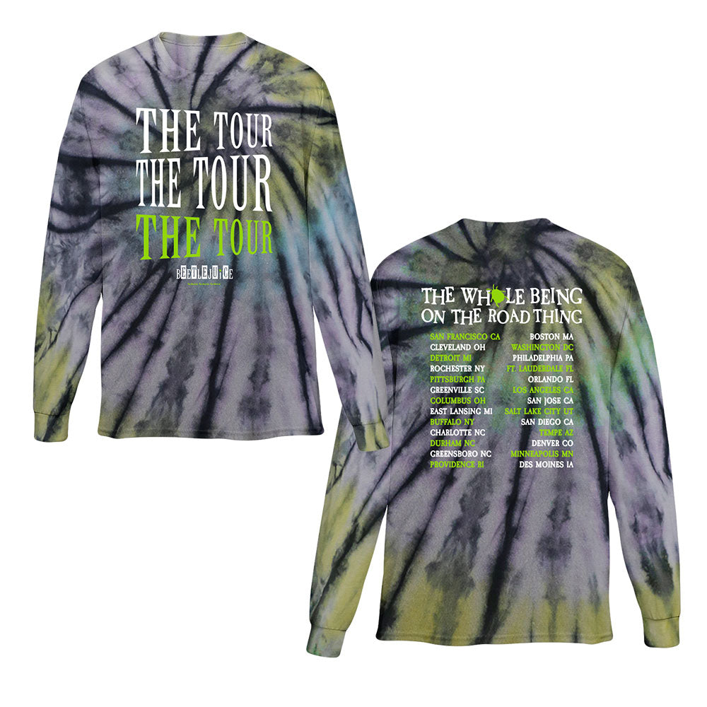 This unisex tie-dye long sleeve crewneck tee features the show's logo and tour route.  100% ringspun cotton.